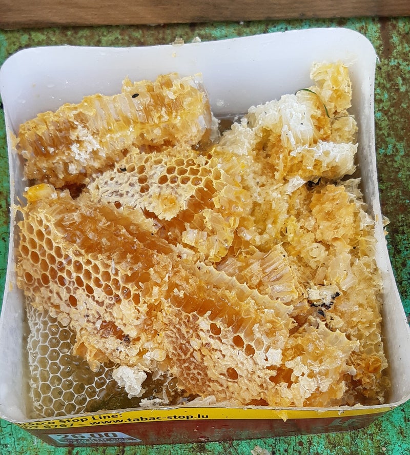 Comme vous pouvez le voir sur les photos 2 et 3, j'utilise les ressources des abeilles (miel, cire et pollen), le reste du cadres, le reste de la cire d'abeille avec un peu de miel et outré.