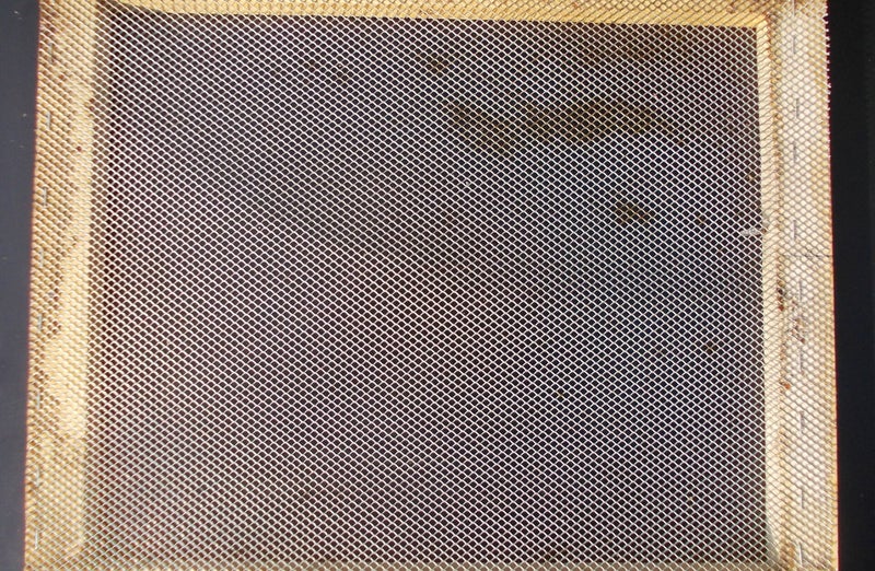 Le cadre avec un grillage anti-varroa et avec le crochet