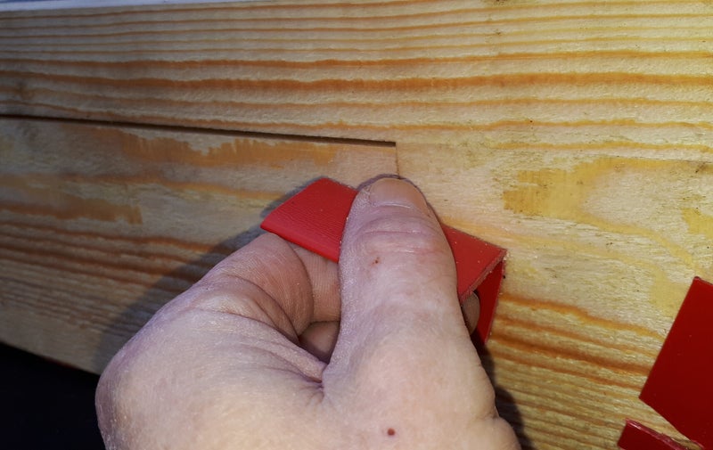 La cale en bois doit être placée dans le trou pour verrouiller le cadre de grillage.